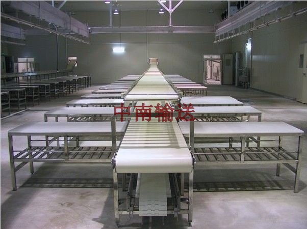 分割輸送機又稱不銹鋼尼龍輸送線,是分割肉流水線生產(chǎn)的主要設(shè)備之一。適用于牲畜胴體劈半、預(yù)冷、排酸后的剔骨、分割,該機的機架體全部采用不銹鋼材料。輸送帶為無毒尼龍輸送帶,為使經(jīng)久耐用,采用了無接頭的特制方式,使該機在使用中達到了無噪音,輸送帶無偏斜現(xiàn)象發(fā)生,機腳座采用尼龍活動腳,安裝調(diào)式輸簡便,機架選料為無縫不銹鋼方管,解決發(fā)積垢污染問題。使設(shè)備的衛(wèi)生條件達到了分割車間對外注冊的標準,并使剔骨、分割肉生產(chǎn)輸送自動化。