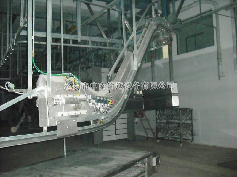 毛豬管軌提升機(jī):用于將致昏、放血后的豬屠體提升,進(jìn)入到控血輸送機(jī)自動(dòng)喂入的緩沖軌道,或直接進(jìn)入控血輸送機(jī)。